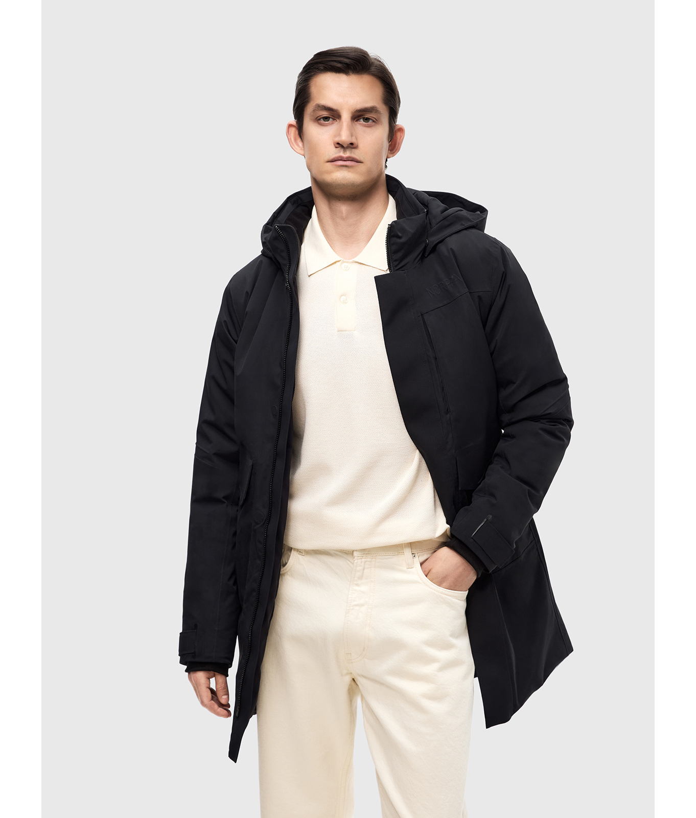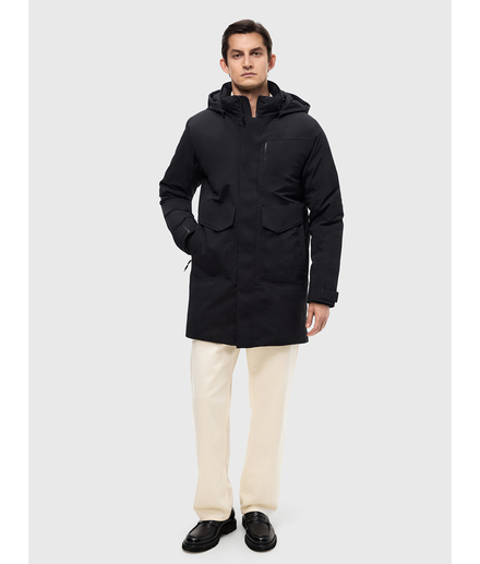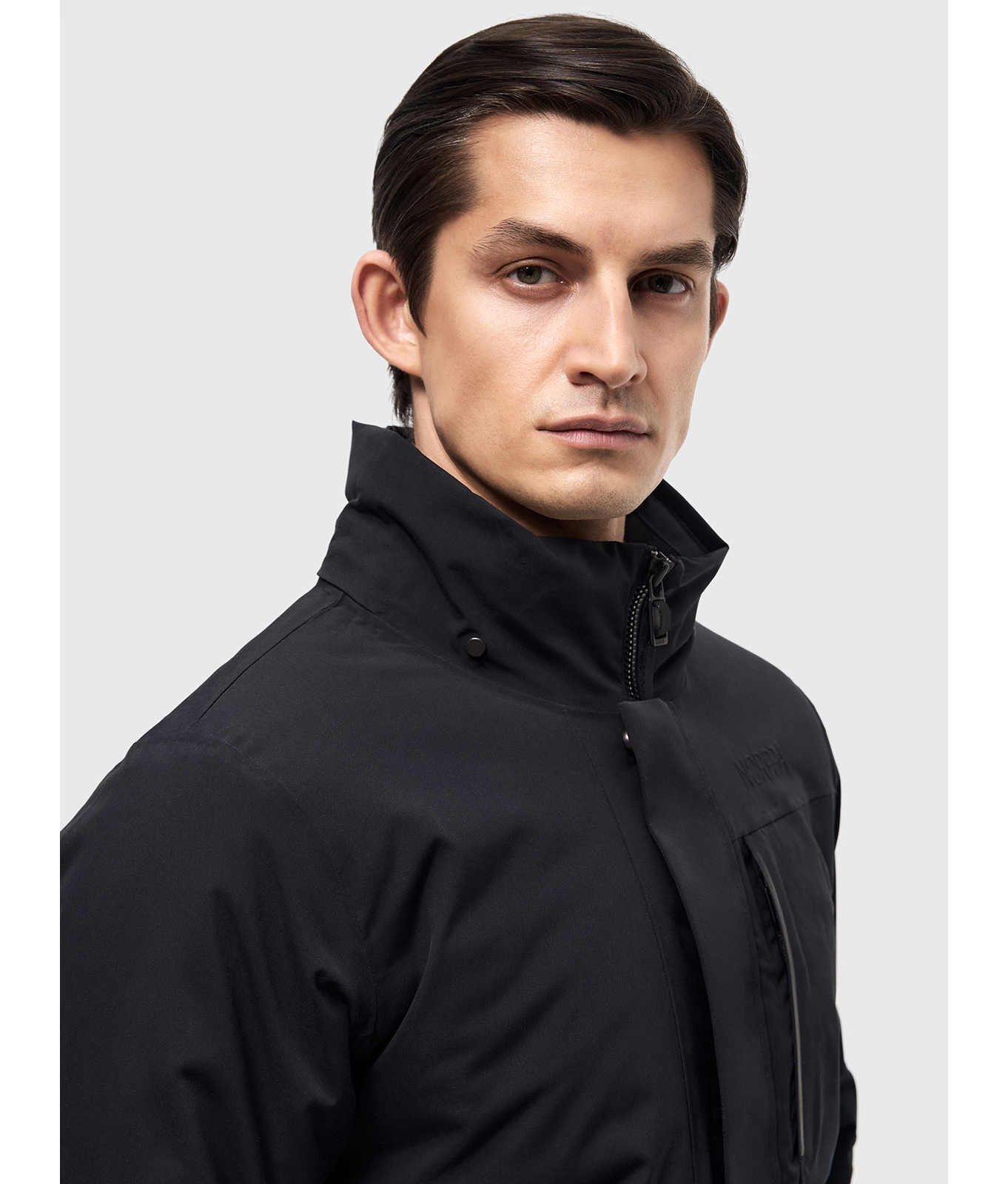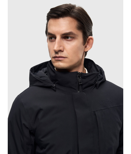 Мужская осенне-зимняя удлиненная утепленная куртка с утеплителем 160 гр/м2 из мембранной ткани. Непромокаемая (уровень непромокаемости 15 000 мм) и ветронепродуваемая. Паропроницаемость 10000 г/м2/24 ч.