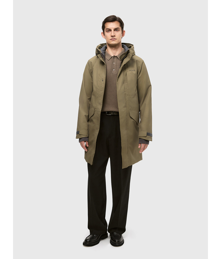 Мужская осенне-зимняя удлиненная утепленная куртка с утеплителем 100 гр/м2 из мембранной ткани. Непромокаемая (уровень непромокаемости 15 000 мм) и ветронепродуваемая. Паропроницаемость 10000 г/м2/24 ч