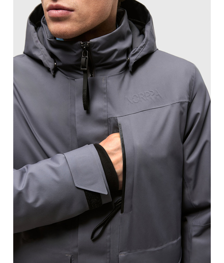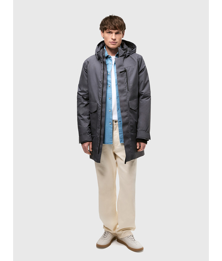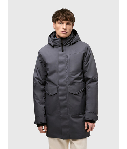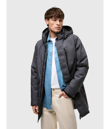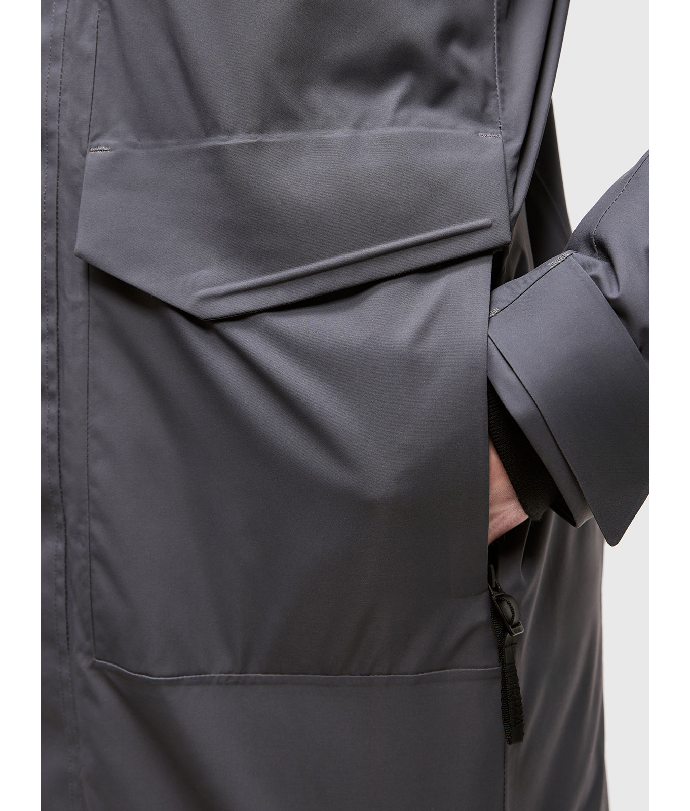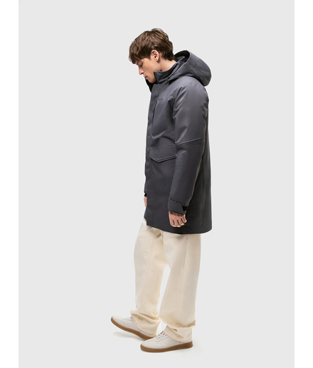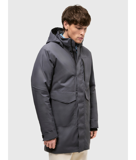 Мужская осенне-зимняя удлиненная утепленная куртка с утеплителем 160 гр/м2 из мембранной ткани. Непромокаемая (уровень непромокаемости 15 000 мм) и ветронепродуваемая. Паропроницаемость 10000 г/м2/24 ч.