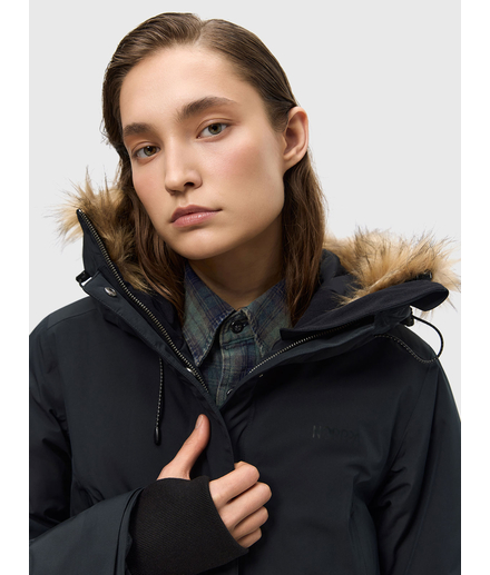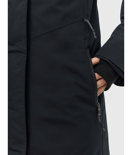 Женская зимняя утепленная куртка с утеплителем 200 гр/м2 из мембранной ткани. Непромокаемая (уровень непромокаемости 15000 мм) и ветронепродуваемая. Паропроницаемость 10000 г/м2/24 ч. Дополнительная водоотталкивающая пропитка DWR.