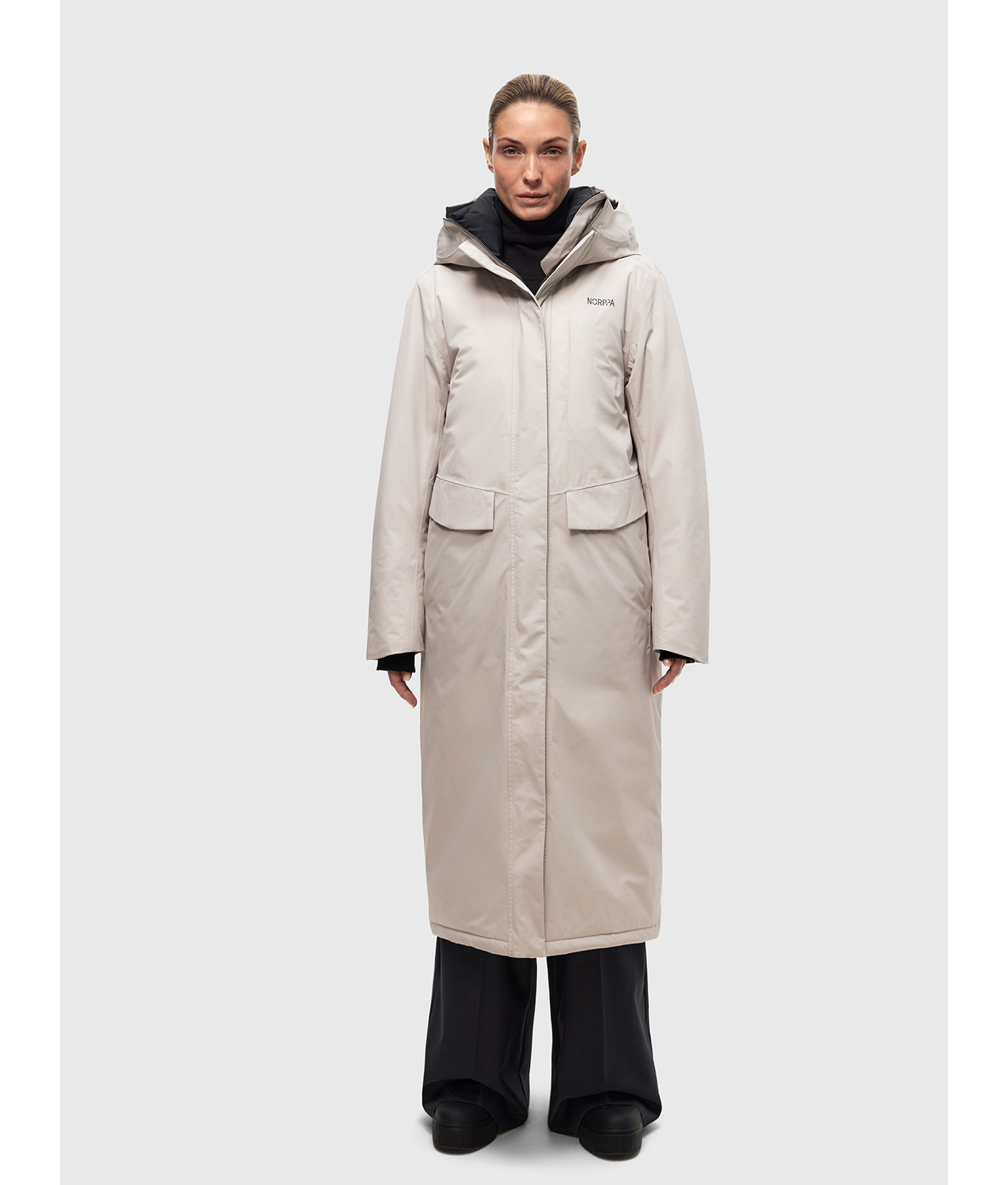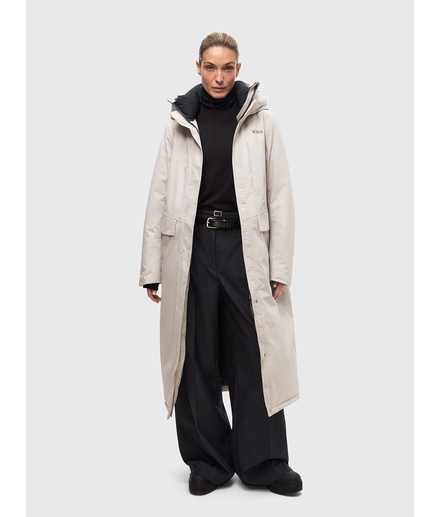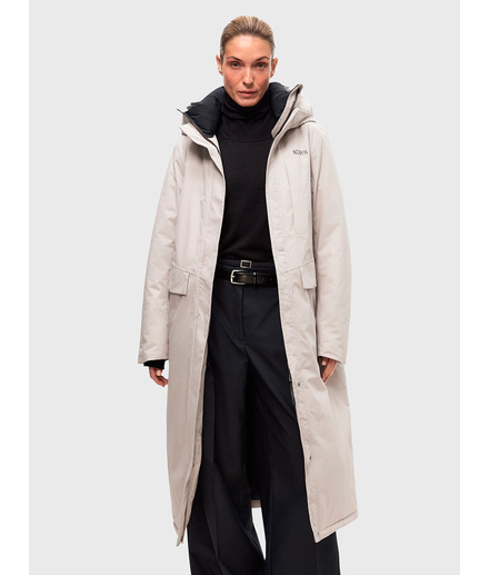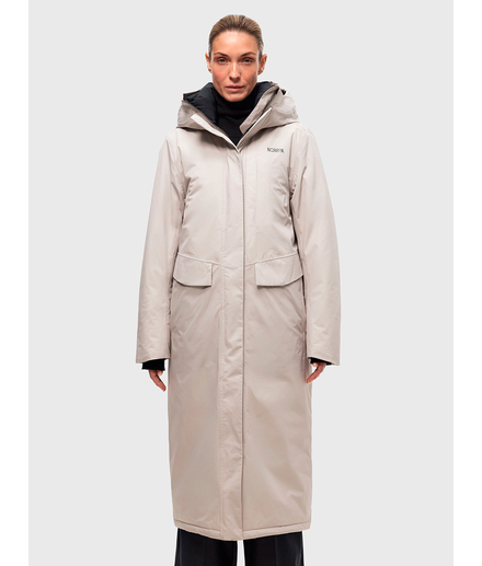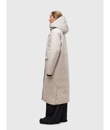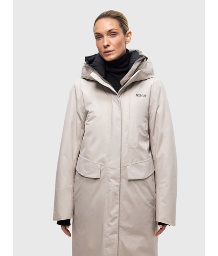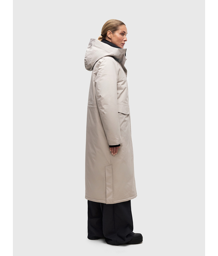 Женская зимняя удлиненная утепленная куртка с утеплителем 200 гр/м2 из мембранной ткани. Непромокаемая (уровень непромокаемости 15000 мм) и ветронепродуваемая. Паропроницаемость 10000 г/м2/24 ч