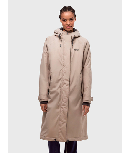 Женская осенне-зимняя удлиненная утепленная куртка с утеплителем 150 гр/м2 из мембранной ткани. Непромокаемая (уровень непромокаемости 15 000 мм) и ветронепродуваемая. Паропроницаемость 10 000 г/м2/24 ч